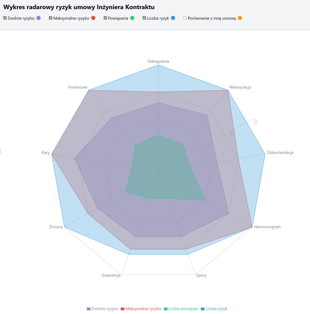 Radarowy wykres ryzyk nie jest normalizowany względem wcześniejszych analiz. Zamieszczamy go jedynie poglądowo.